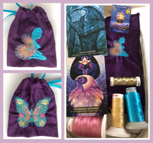 Ved evt. korttrækning bliver kortets energifrekvens og budskab transformeret med over i broderiet.