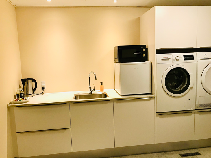 Mit hus har et særligt teknikrum, der ligger under garagen.